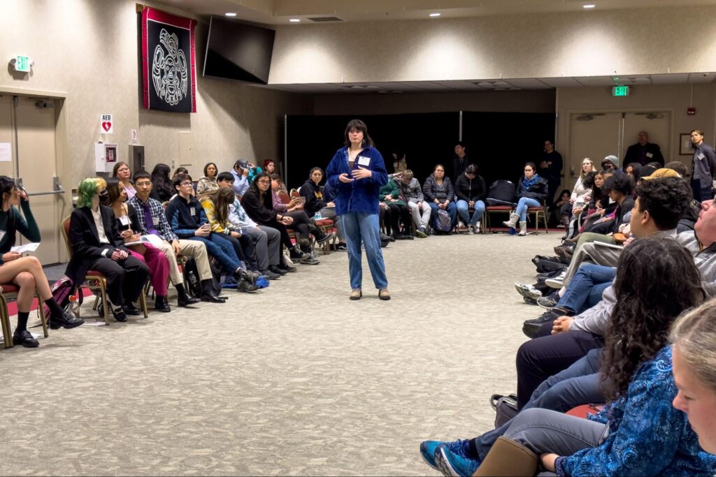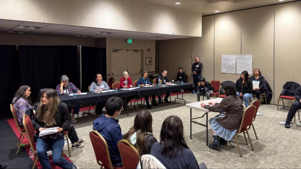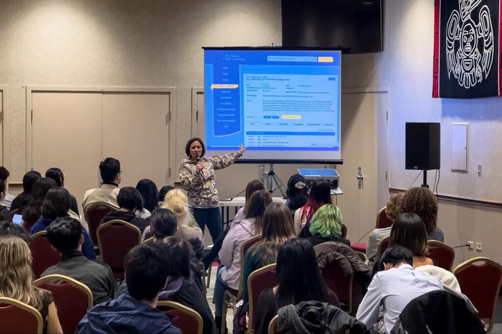 Students also drafted and practices their own testimony on HB 26 – Council for Alaska Native Languages, and SB 24 – Public Schools: Mental Health Education. The mock testimonies were presented in front of a panel which included Representative Andi Story, Joe Nelson, Lisa Worl, and Tesla Cox.