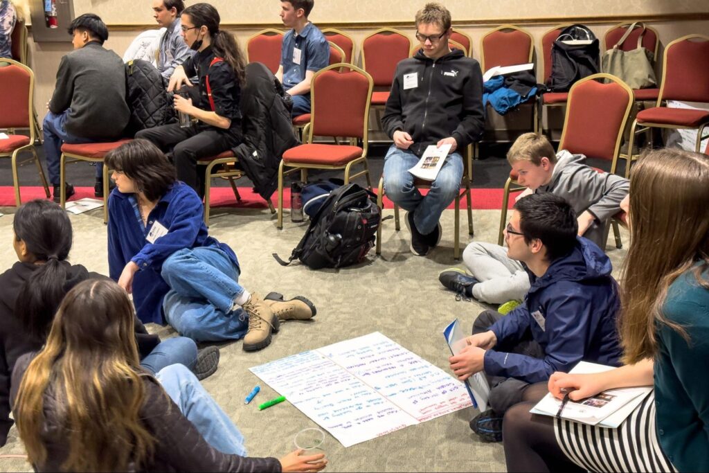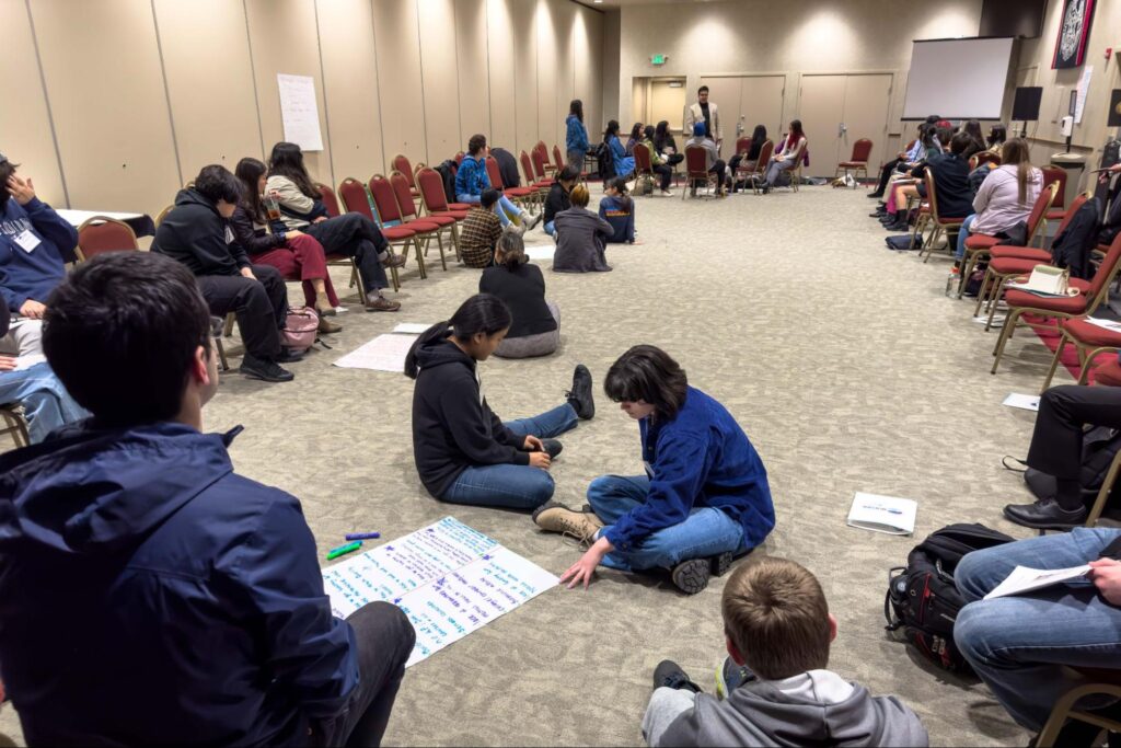 Students gathered in small groups to discuss the most pressing issues facing them in their community. One or more students in these groups shared the topics most important to them.
