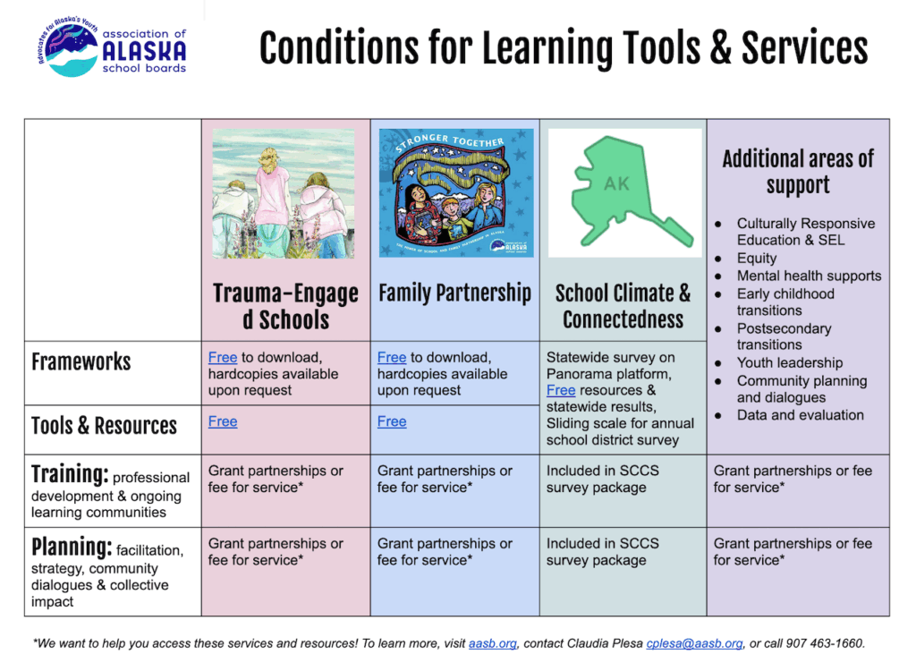 To foster these conditions, AASB’s Conditions for Learning team offers comprehensive support, including training, resources, coaching, and strategic planning to school districts. The aim is to cultivate environments where learning is not only effective but also enjoyable. This approach is structured around three key pillars: