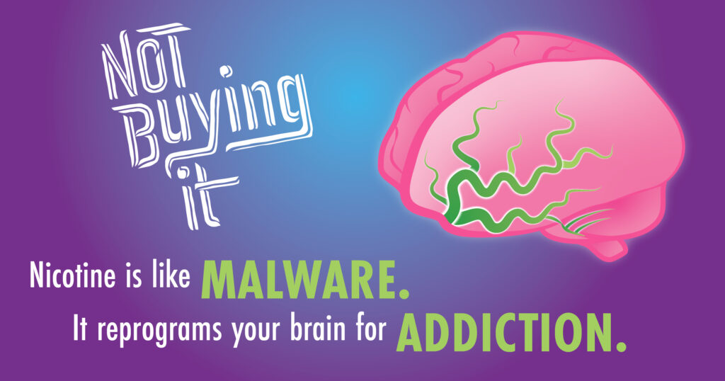 Alaska’s Tobacco Prevention and Control Program launched a tobacco toolkit. Toolkit materials help educate about the health risks of tobacco and nicotine. They also promote Not Buying It and AK Live Vape Free. Not Buying It is a statewide campaign that encourages young Alaskans to live tobacco- and vape-free lives. AK Live Vape Free is a confidential text messaging program. Teens ages 13-17 can join for free by texting VAPEFREE to 873373.