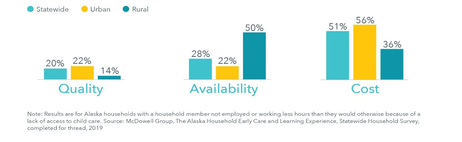Even for those who do have access, it can be tremendously expensive. The same dashboard and needs assessment found that single mothers in Alaska spend over one-third of their income on childcare.