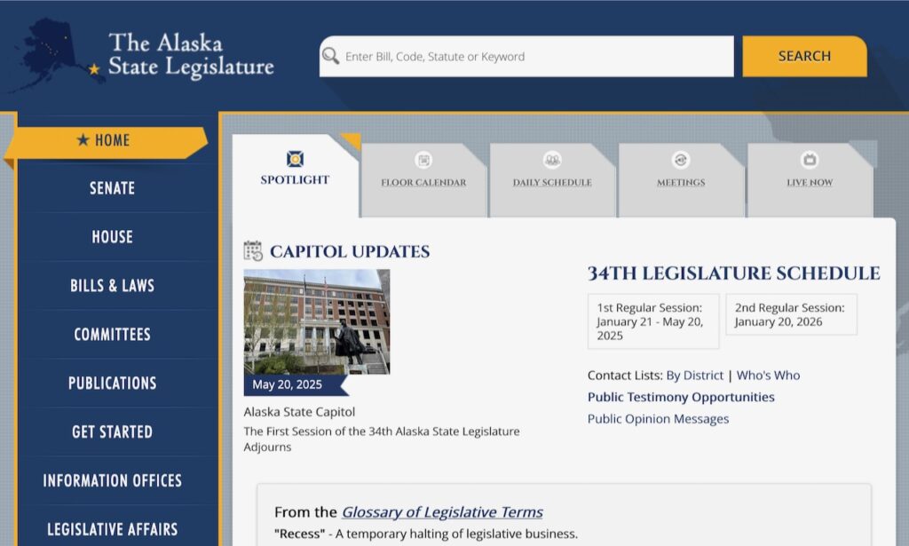 Use these tools to stay informed during the Legislative Session. Watch live or recorded House and Senate Floor Sessions and Committee Hearings, view daily schedules, access official legislative resources, and follow the progress of bills.