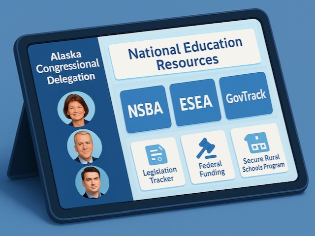 This collection of state and national resources provides school board members, educators, and advocates with key policy updates, legislative tools, and funding information. It offers links to help navigate Alaska’s education advocacy landscape and stay connected to efforts that strengthen public education statewide and nationally.